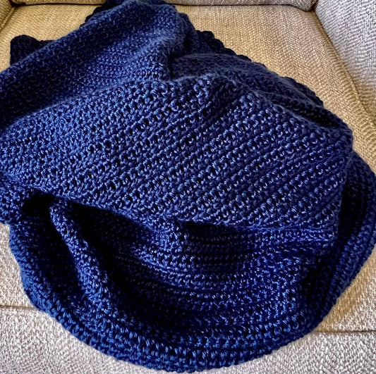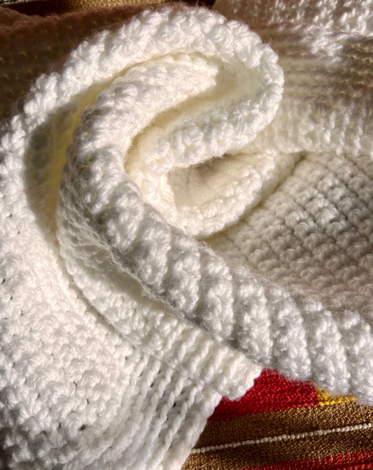 Handmade Crochet Baby Blanket, Snow White with Navy Border