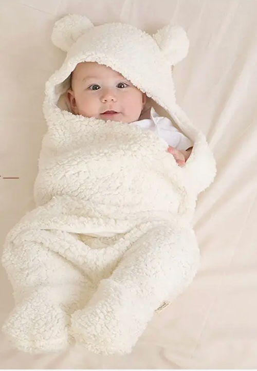 Soft Cotton Shearling Infant Swaddle - Teddy Bear Wrap